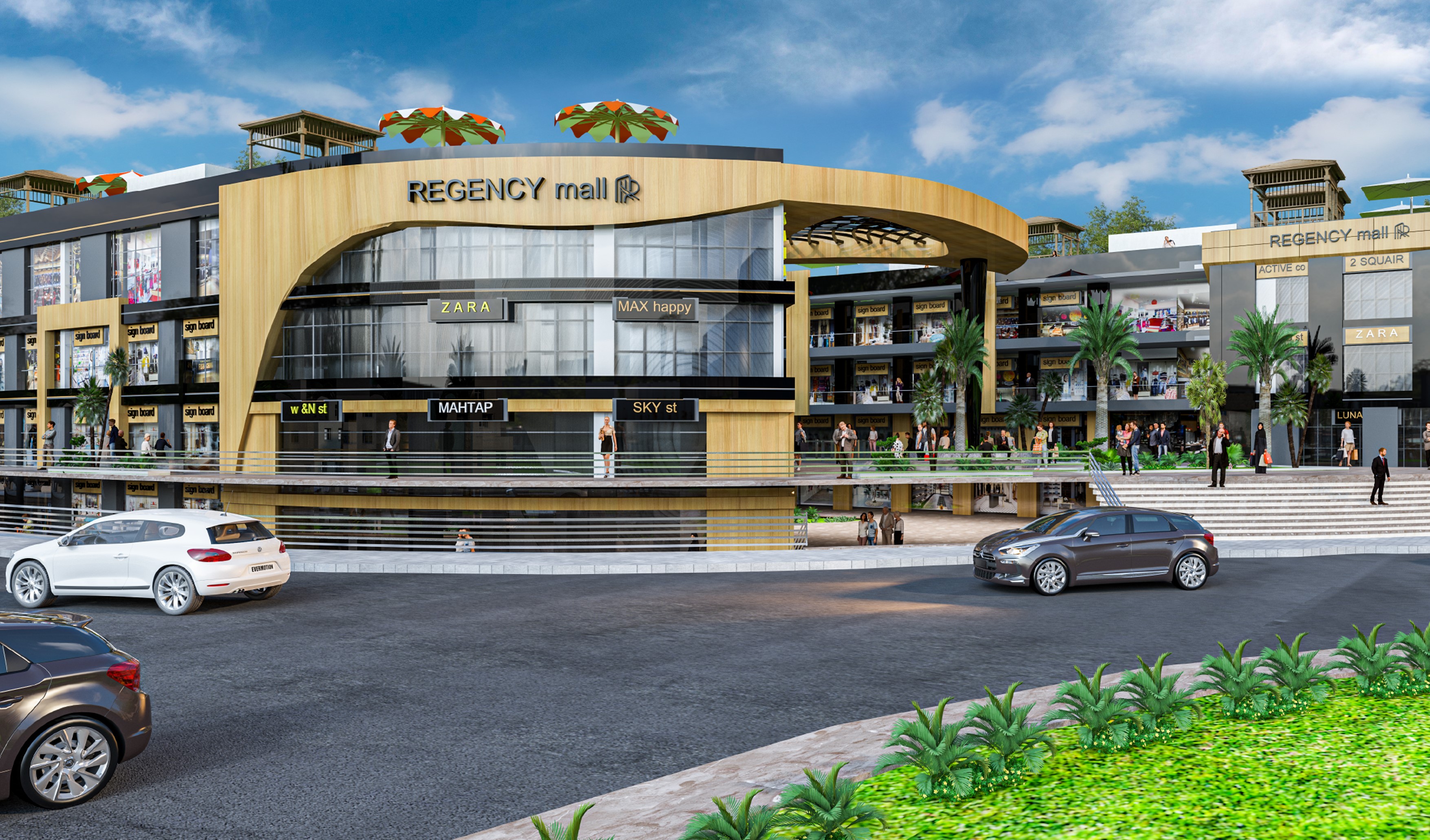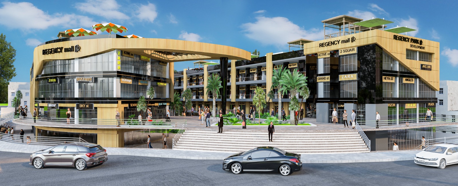 ریجنسى مول حدائق اكتوبر تم تصمیم المول بان تكون كل المحلات التجاریة و الوحدات الاداریة و الطبیة واجھة رئیسیة
