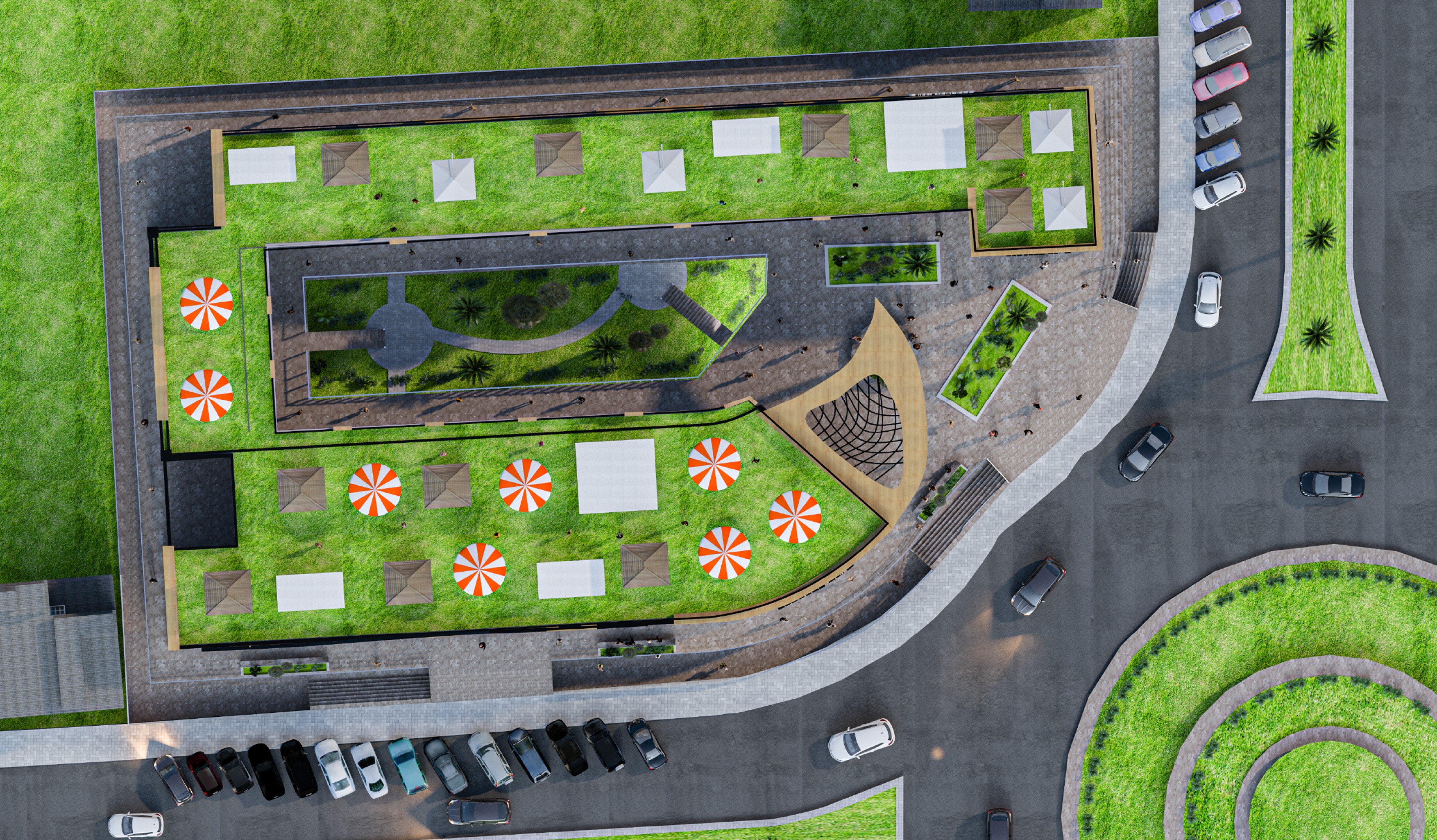 , مبني على اجمالى مساحة 3825 متر مربع, منقسم الي 4 أدوار مكون من دور أرضي منخفض + ارضى + دورین